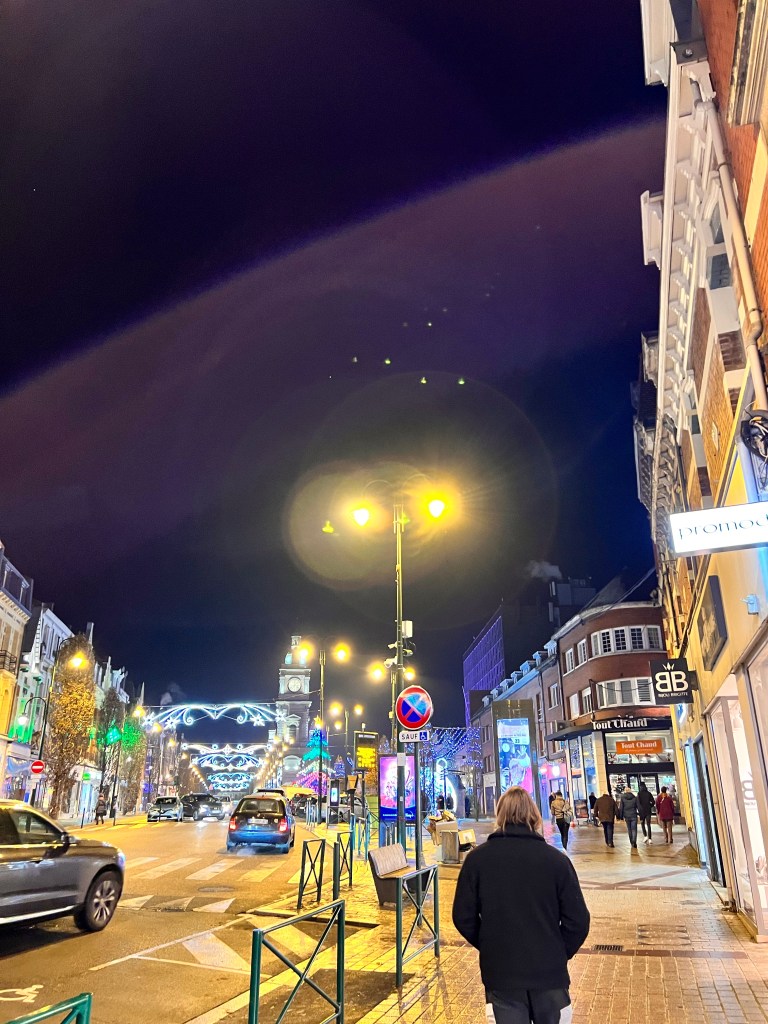 After disembarking the shuttle in Calais we drove for one hour in a south easterly direction to Lens. Arriving there in the dark and with temperatures around -5 Celsius meant it wasn’t a time for much sightseeing. We still managed to take a walk down through the central high street, see some Christmas lights (image above) and then quickly head back to the car to find some dinner nearby and escape the cold. Ash found a good looking pizza takeout online called Pizza de nuit so we decided to turn up and order some for the flat. We barely got through the order with their English and our French but the “Pizza aux quatre fromages” (four cheeses) was proper delicious and an ode to French cheese.